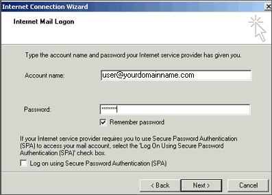 Note: Do NOT check the box "Log on using Secure Password Authentication".