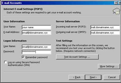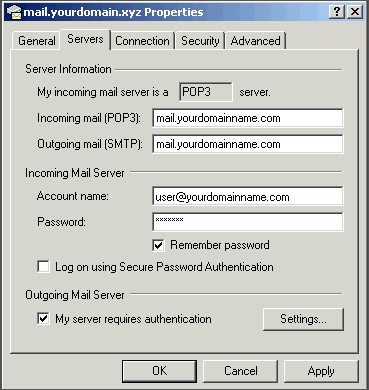 • Outgoing Mail server: mail.domainname.xyz