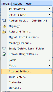 1. In Outlook 2007, from the Tools menu, select Account Settings.