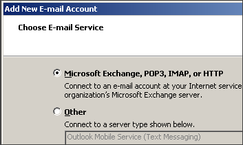 3. Select Microsoft Exchange, POP3, IMAP, or HTTP and click Next.