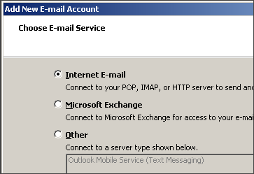 5. Select Internet E-mail and click Next.