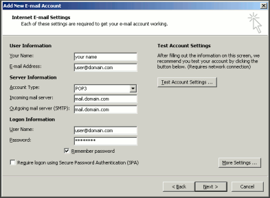 • Account Type: POP3