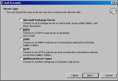 3. Select POP3 and then click Next.