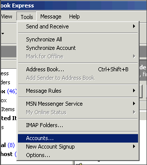 1. In Outlook Express, go to the Tools menu. Click on Accounts...